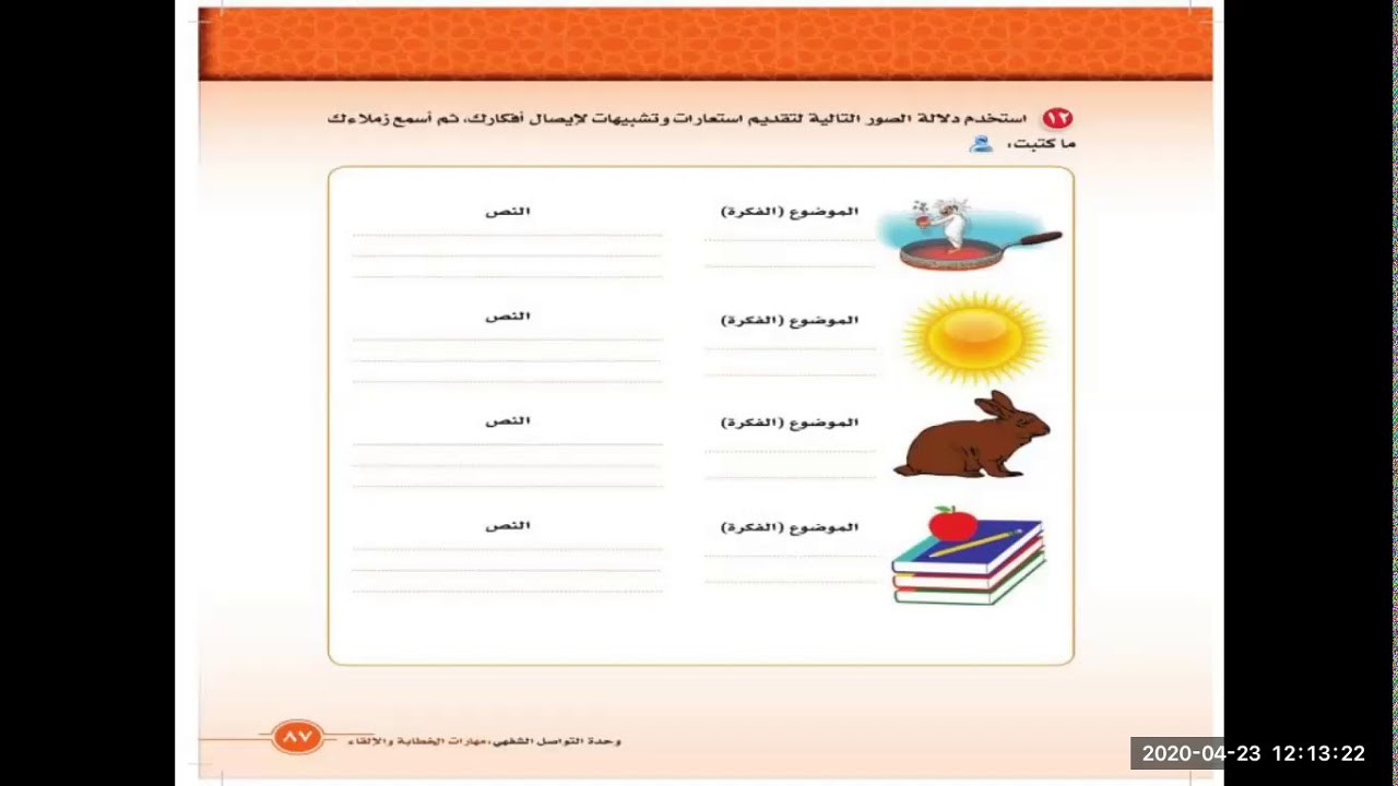 استخدم دلالة الصور التالية لتقديم استعارات وتشبيهات لايصال افكارك ثم اسمع زملاءك ما كتبت الرسائل