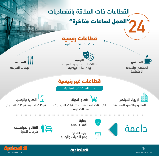السماح للأنشطة التجارية بالعمل 24 ساعة واستثناء 4 قطاعات من الرسوم صحيفة الاقتصادية