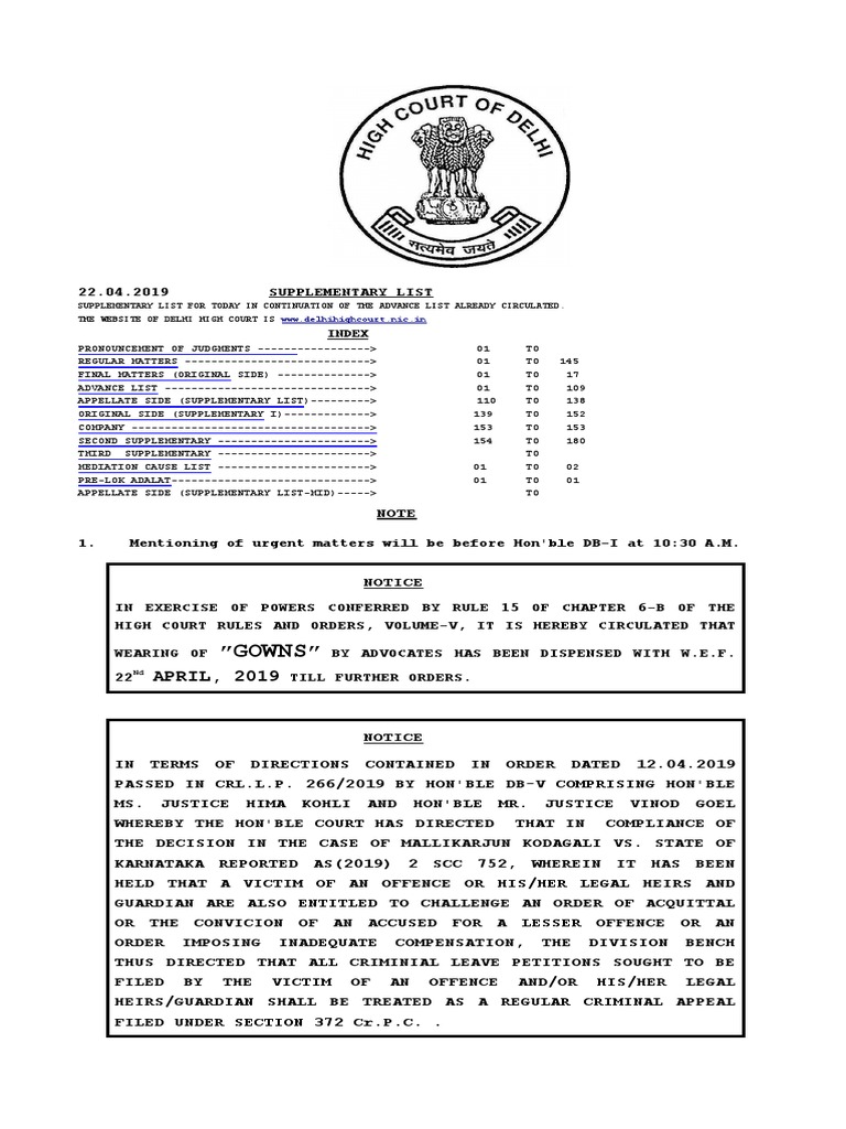 Notes 1 Following Directions Are Issued By Hon Delhi High Court