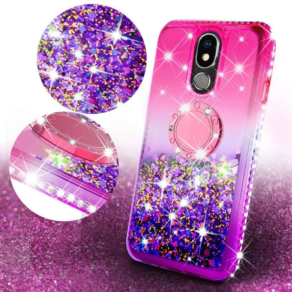 Soga Rhinestone Liquid Quicksand Cover Cute Girl Phone Case Compatible For Lg Harmony 3 Lg K40 Lg K12 Plus Lg X4 2019 Lg Solo Case With Ring For Magnetic Car Mounts And Lanyard Purple Blue